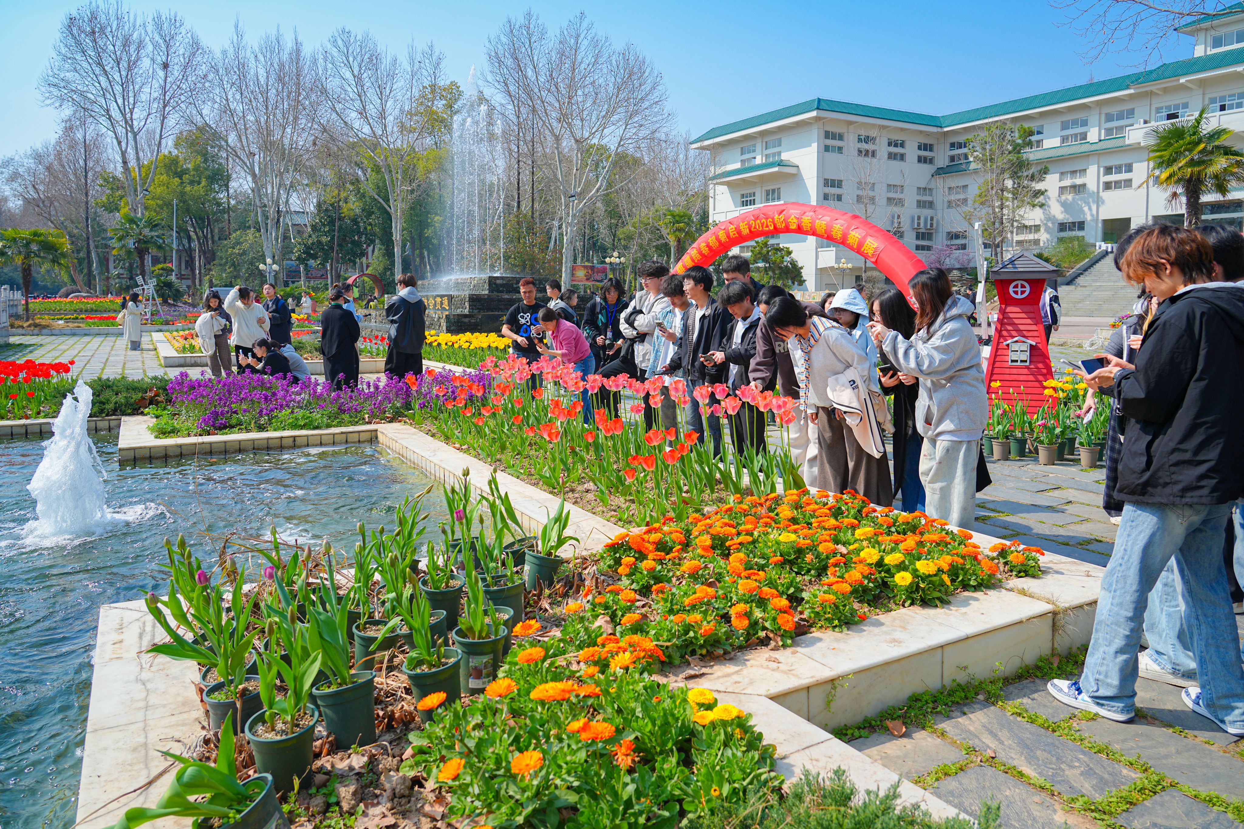 本网讯(记者 刘娜 摄影 陈冲 郑景升)春和景明,繁花缀校。3月11日,我校2026年郁金香暨春菊展在文化广场启幕。3.7万株郁金香与3万株春菊次第绽放,为春日校园注入灵动生机,成为新学期师生逐梦前行的美好注脚。
