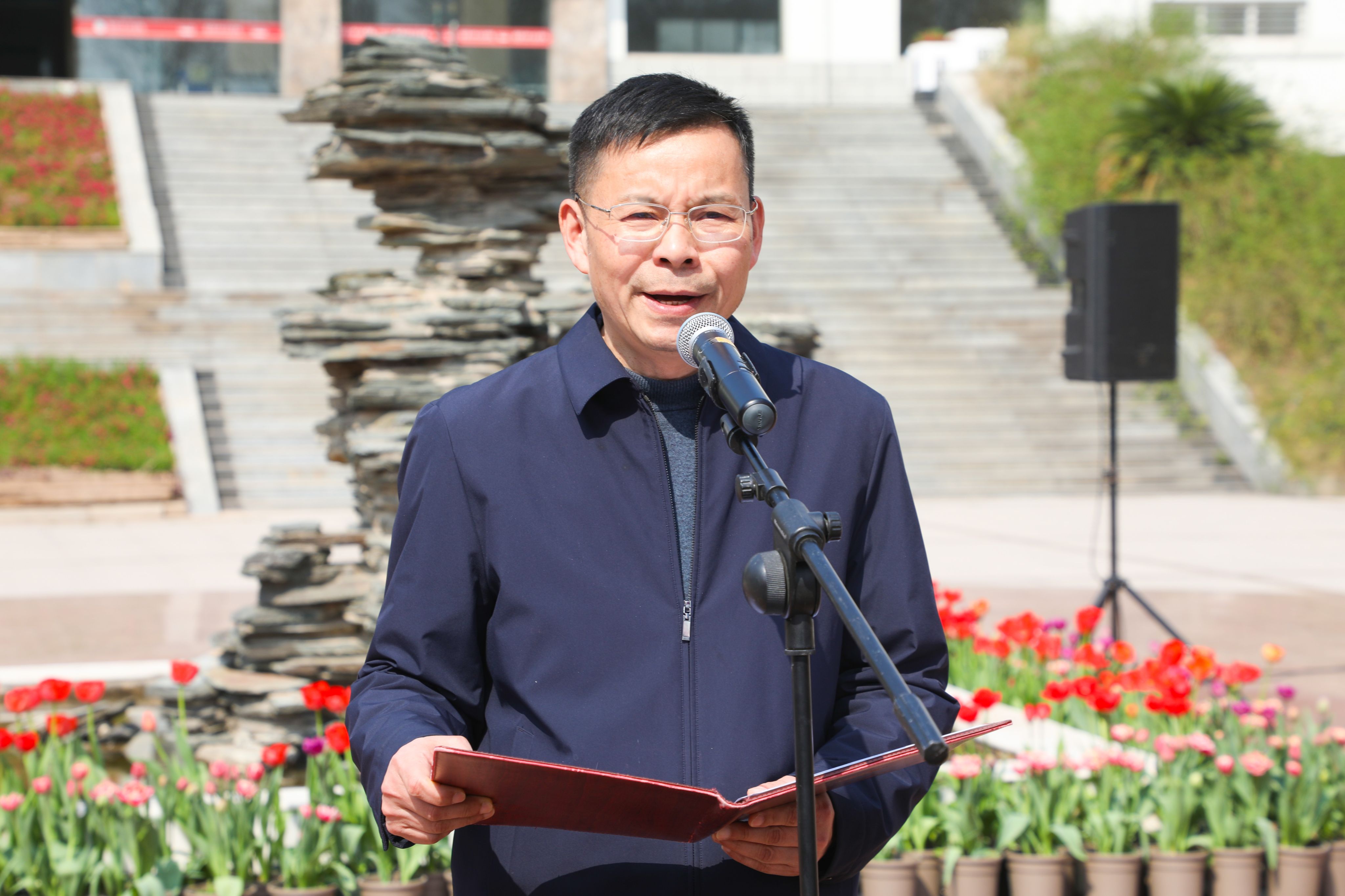 开幕式上,校党委常委、副校长邱建洲发表致辞。他介绍,本次花展共展出红色长安、皇家红等30个郁金香品种3.7万株,瓜叶菊、金盏菊等菊科花卉3万株。这片绚烂花海不仅是大自然的美好馈赠,更是理念的传播、文化的交融与美育的课堂。“四季花展”已成为我校独具特色的校园文化品牌,春季郁金香暨春菊展更是其中的开篇之作。他希望全校师生以此次花展为契机,走出教室、走出寝室,亲近自然、感受美好。