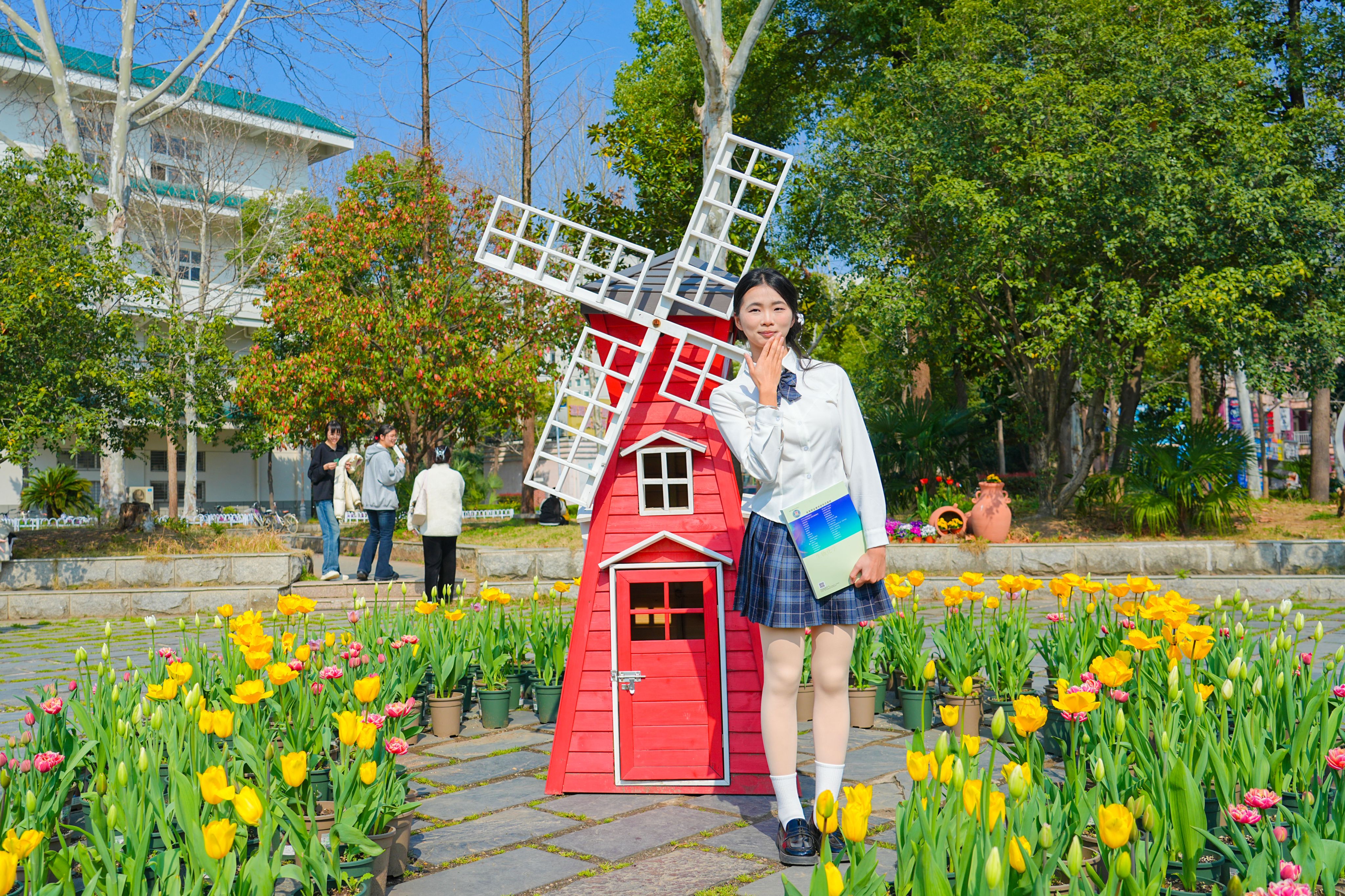本次花展以“骐骥踏春,郁菊启新”为主题,主展区设在文化广场,次展区分布于植物园与大健康产业园,形成移步换景、处处有花的校园景观格局。主展区内,郁金香亭亭玉立,春菊烂漫铺陈。微风拂过,橙红粉紫交织成流动的彩色花溪,让师生不自觉慢下脚步,沉醉在春色里。