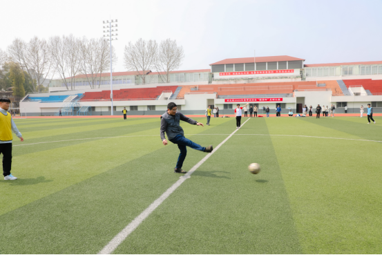 校党委书记、校体委主任江珩为首场足球比赛开球