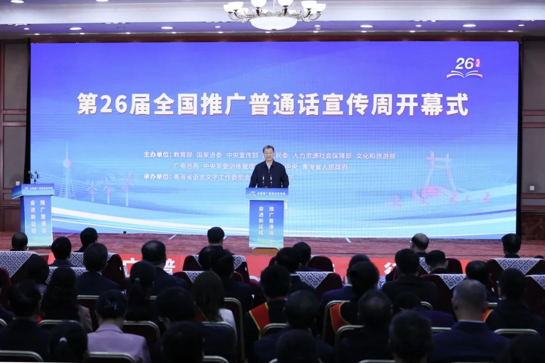 9月13日,以“推广普通话,奋进新征程”为主题的第26届全国推广普通话宣传周在青海西宁开幕。教育部党组书记、部长,全国推普周领导小组组长怀进鹏,青海省委书记、省人大常委会主任陈刚,青海省委副书记、省长吴晓军出席开幕式,怀进鹏讲话,吴晓军致辞。教育部党组成员、副部长,国家语委主任陈杰主持开幕式。青海省副省长杨志文,中央宣传部副秘书长汤恒等全国推普周领导小组成员单位负责同志出席活动。