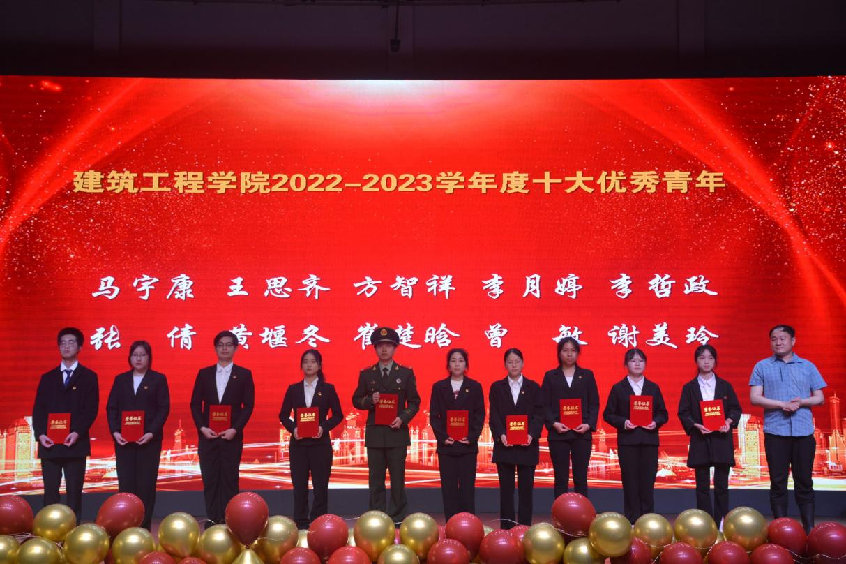 校务委员、建筑工程学院院长刘怿凡为“十大优秀青年”颁奖