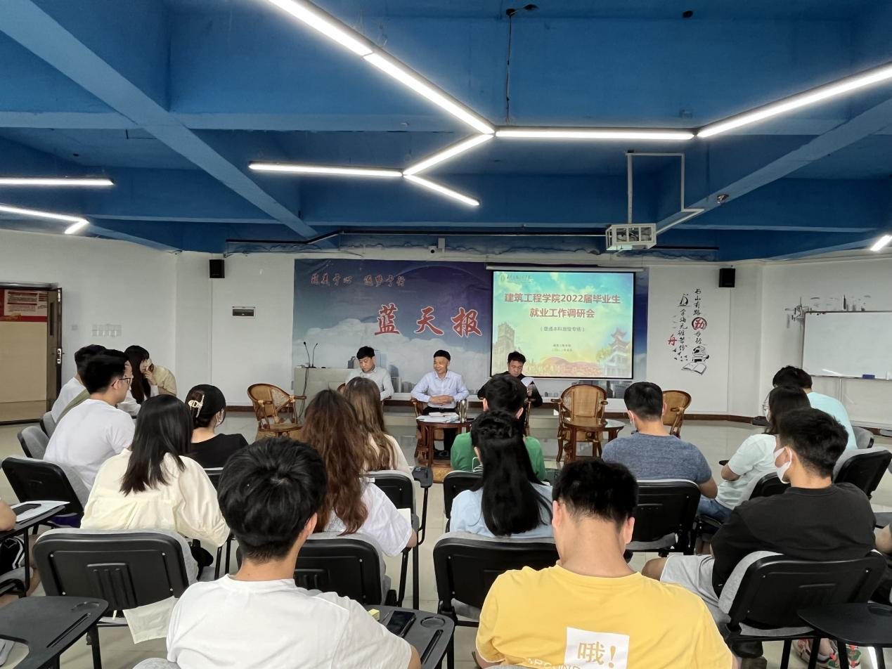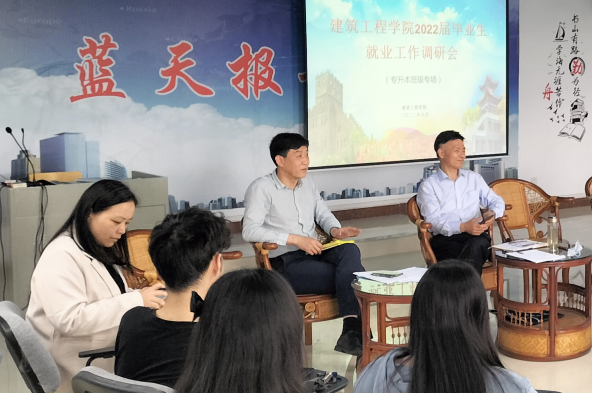 本网讯 (通讯员 祝美)为进一步推进我院2022届毕业生就业工作,全面推动学院毕业生就业,充分调动毕业生就业的主动性和积极性,5月17日下午,建筑工程学院在406报告厅组织召开两场2022届毕业生代表座谈会,副校长李斌成参加会议并与师生互动,学院院长刘怿凡,党总支书记李昌龙以及毕业班辅导员代表参加了座谈会。