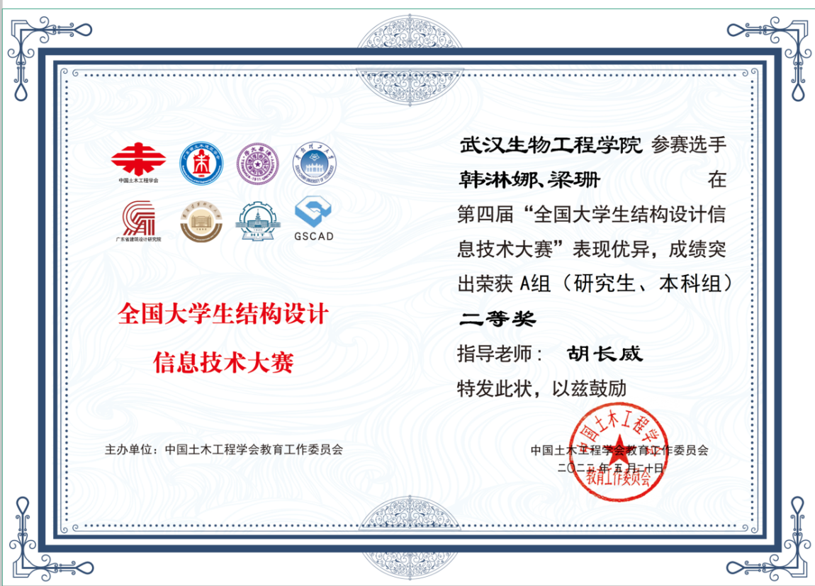 本网讯(通讯员 胡长威)2022年5月10日,第四届全国大学生结构设计信息技术大赛(研究生、本科组)落下帷幕,我校建筑工程学院胡长威老师指导的韩淋娜、梁珊学生团队和廖胤淦同学最终分别获得全国二等和三等奖各1项。