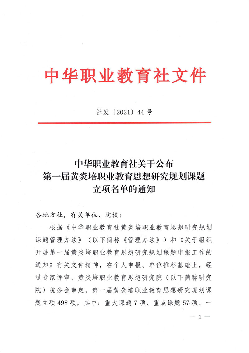 喜讯!我校立项第一届黄炎培职业教育思想研究规划课题四项