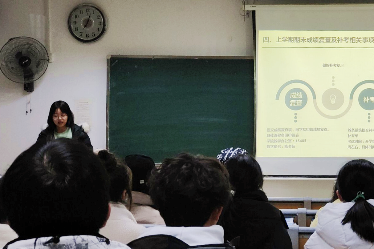程蓓老师聚焦新学期学风建设,就为什么制定学业发展目标、怎么制定学业发展目标和如何实现学业发展目标进行了系统讲解,提出了学业提升要求。