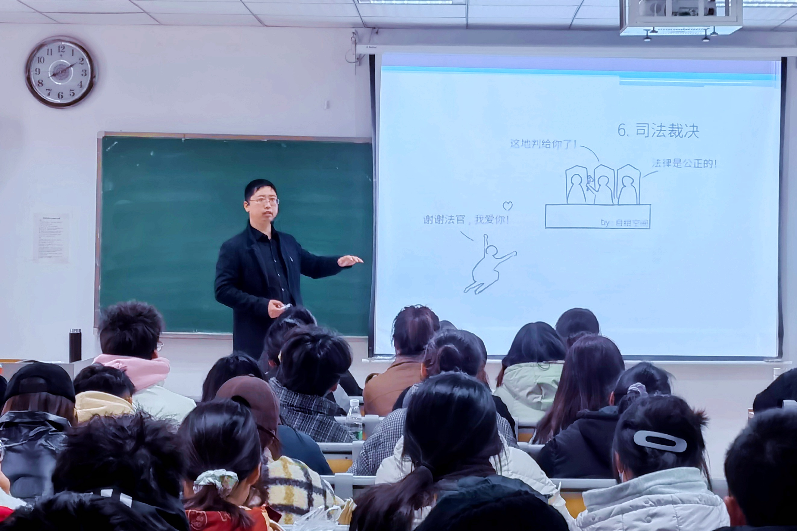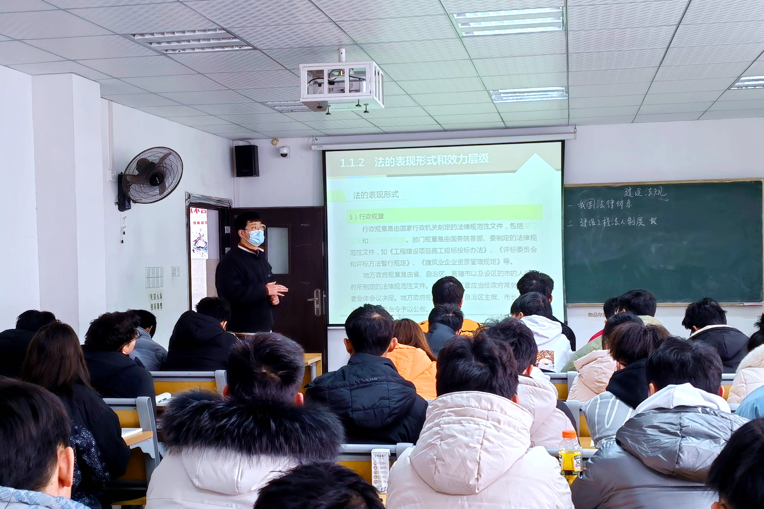 图为《建设法规》课堂上陈想老师讲解教学目的
