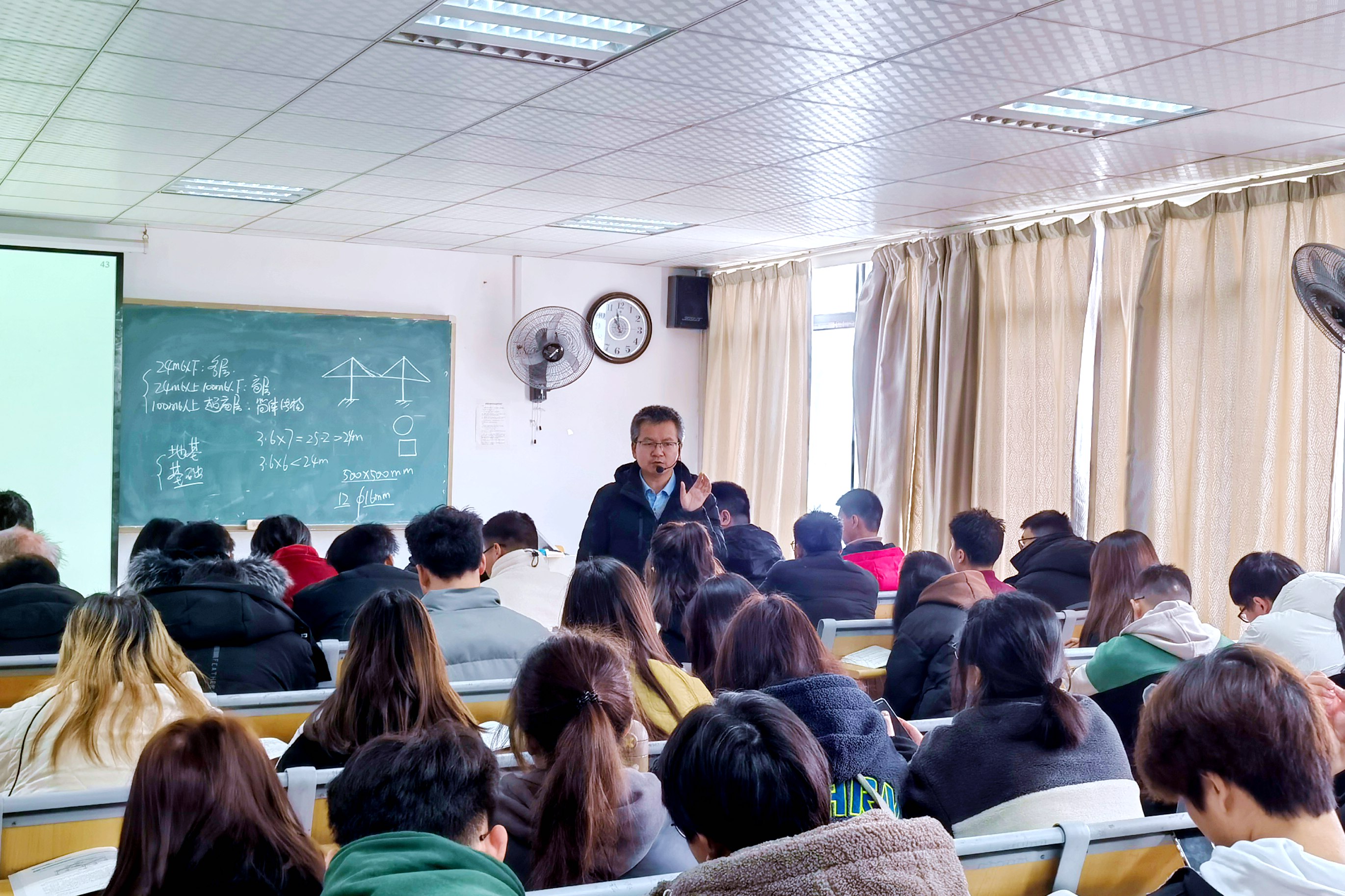 图为《混凝土结构设计》课堂上刘和亮老师介绍学习内容