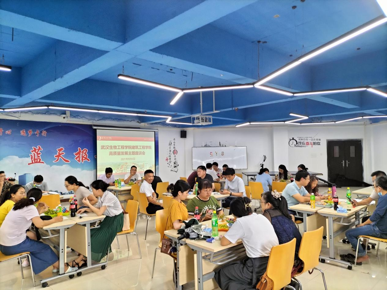 本网讯(通讯员 刘宇)2021年9月5日下午,建筑工程学院在15号楼406教工俱乐部举行了高质量发展主题座谈会,会议围绕“自立自强、创新创业”高素质应用型人才培养目标,讨论如何推进一流专业、一流课程建设;结合学校实际,讨论如何优化协同机制,将“三全育人”做实并形成品牌;以及如何稳定本科招生并实现一定的增长等三个方面开展研讨交流,分管校领导和学院全体教职员工参加了会议,校务委员、建筑学院院长刘怿凡主持会议。