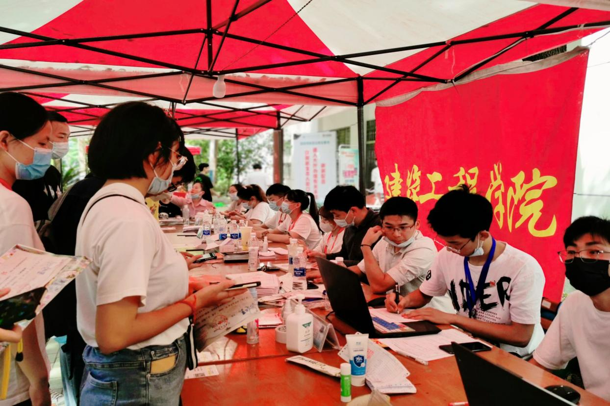 图为建筑工程学院2021级新生报到现场