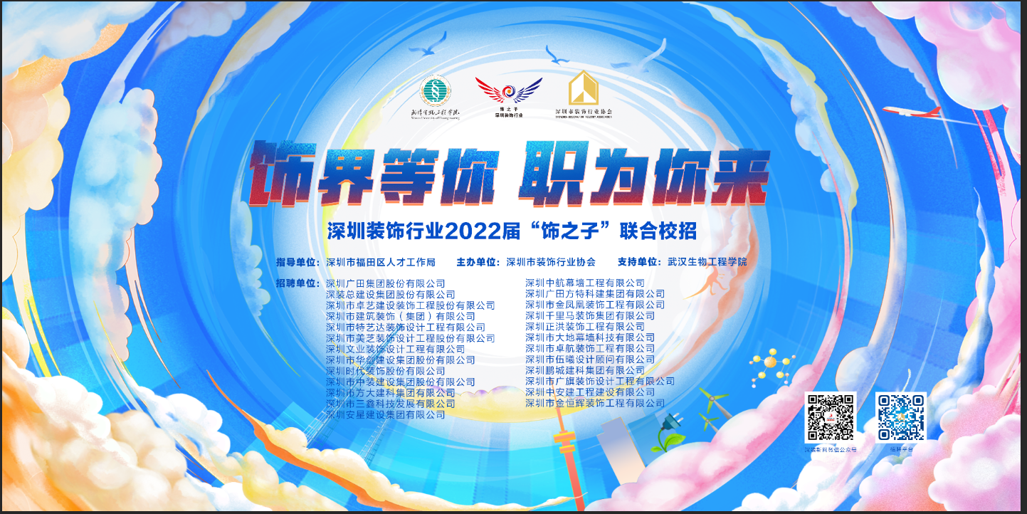 本网讯(通讯员 史钰荣)9月28日,由建筑工程学院、招生就业处联合举办的“2022届毕业生专场招聘月系列活动——深圳市装饰行业“饰界等你•职为你来”2022届“饰之子”联合校招”在筑美广场举行,来自深圳的31家优质企业参会(含上市企业、行业龙头企业等)并提供工程设计、施工管理、工程造价、财务管理、机械设计、机电管理、人力资源管理、园林设计等800余就业岗位,正式拉开了2022届毕业生就业线下招聘活动的大序幕。