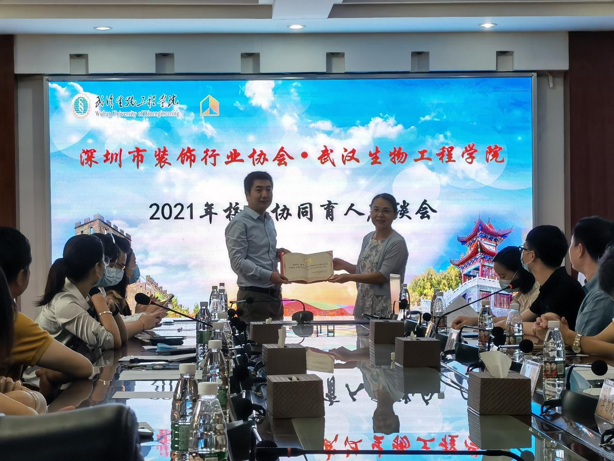 招聘会期间,深圳市装饰行业协会与武汉生物工程学院共同在西湖厅和307多功能报告厅分别举行了2021年校企协同育人座谈会、职业规划指导讲座、校友分享等系列活动。深圳市装饰行业协会常务副会长庄志伟、深圳市装饰行业协会团委副书记杨野;学校常务副校长顾豪爽、教务处处长长董妍玲、招生就业处副处长吴殿娇等参加活动。