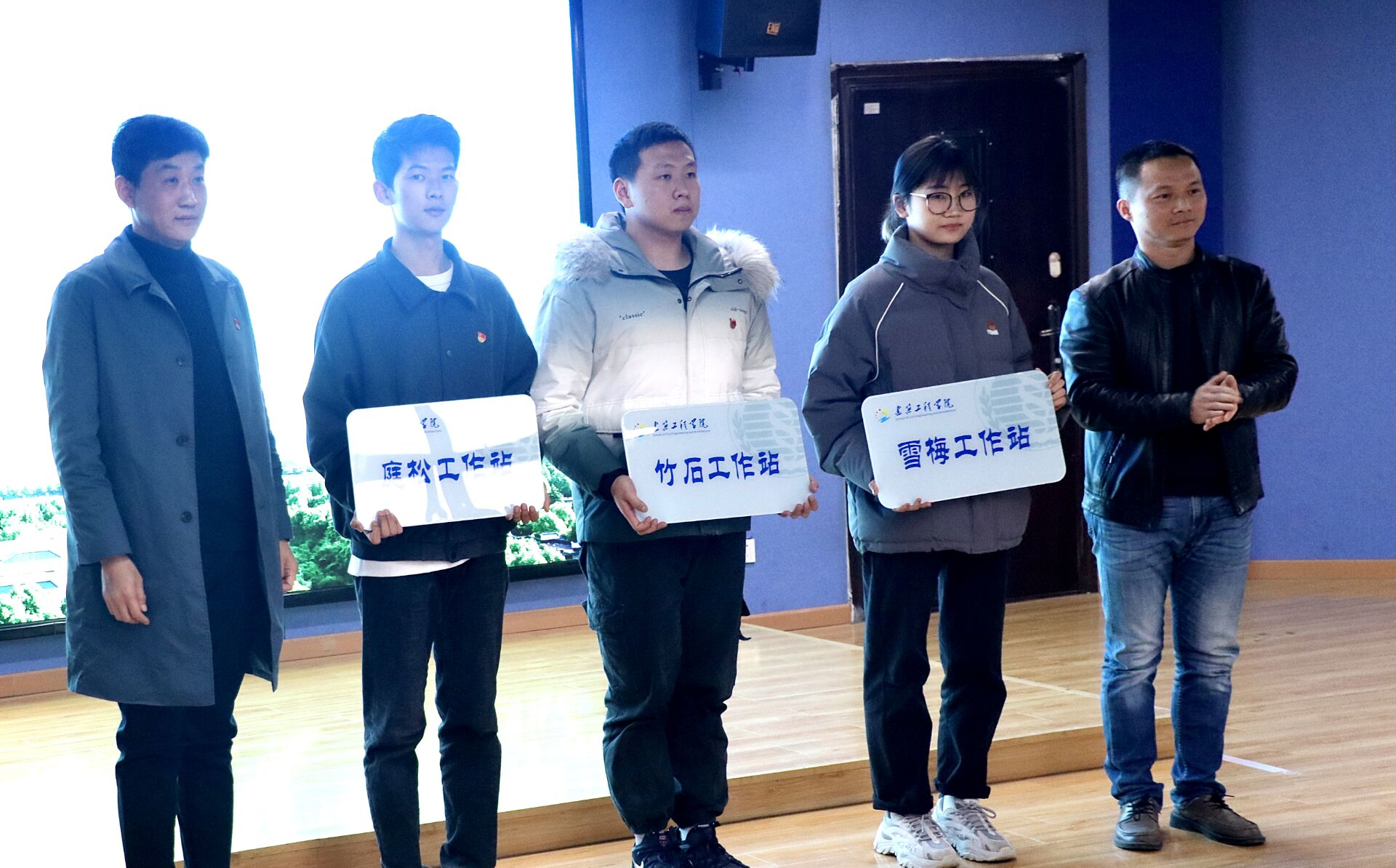 图为学工处常务副处长王龙、建筑工程学院党总支书记李昌龙为工作站授牌