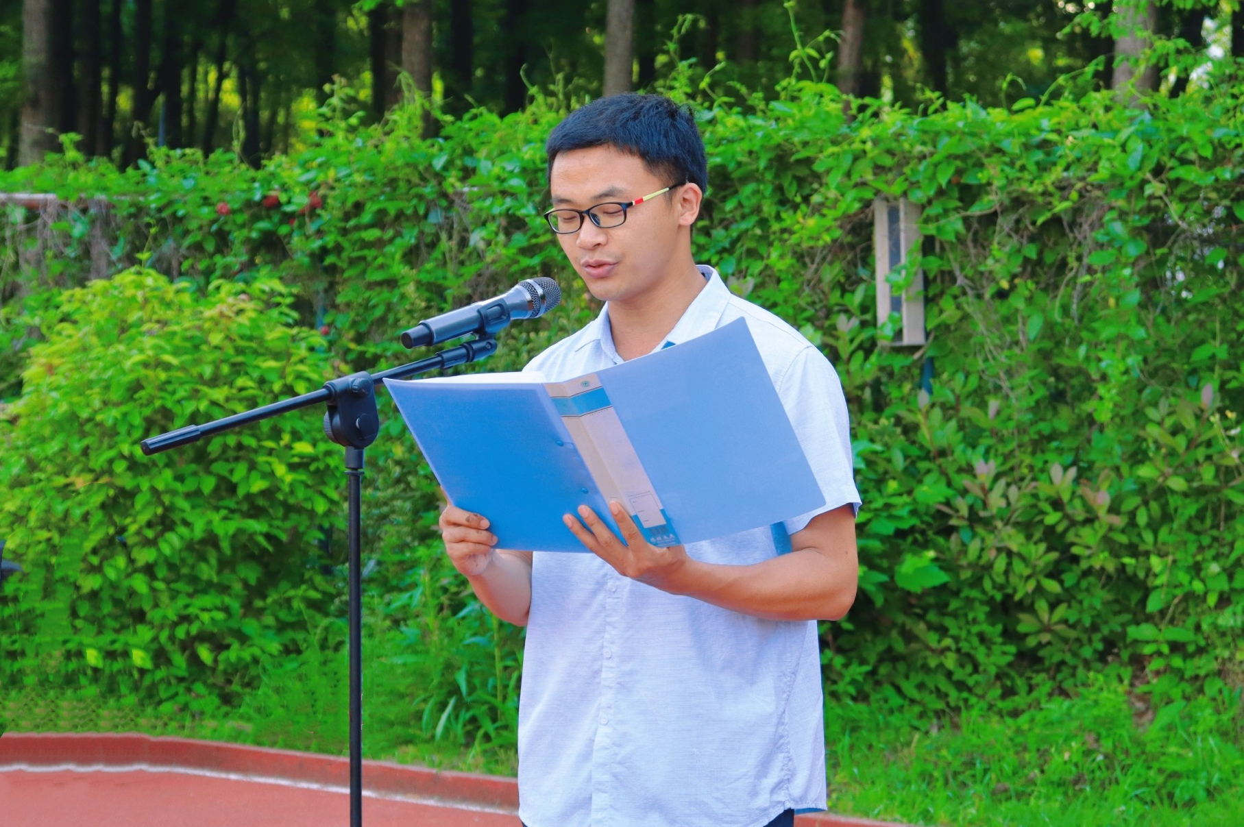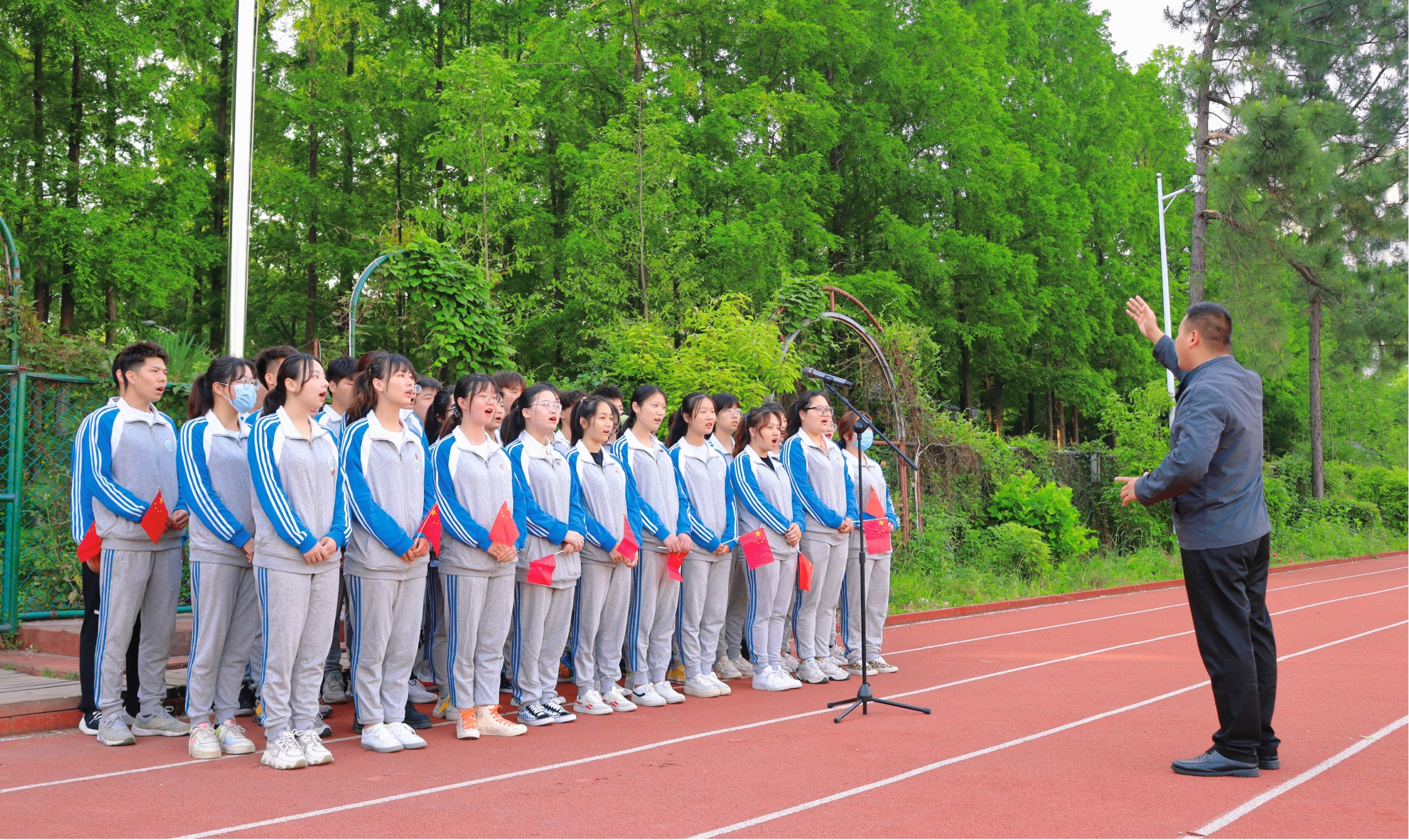 图为教师代表叶朗同志国旗下发言《使命担当,筑梦未来》