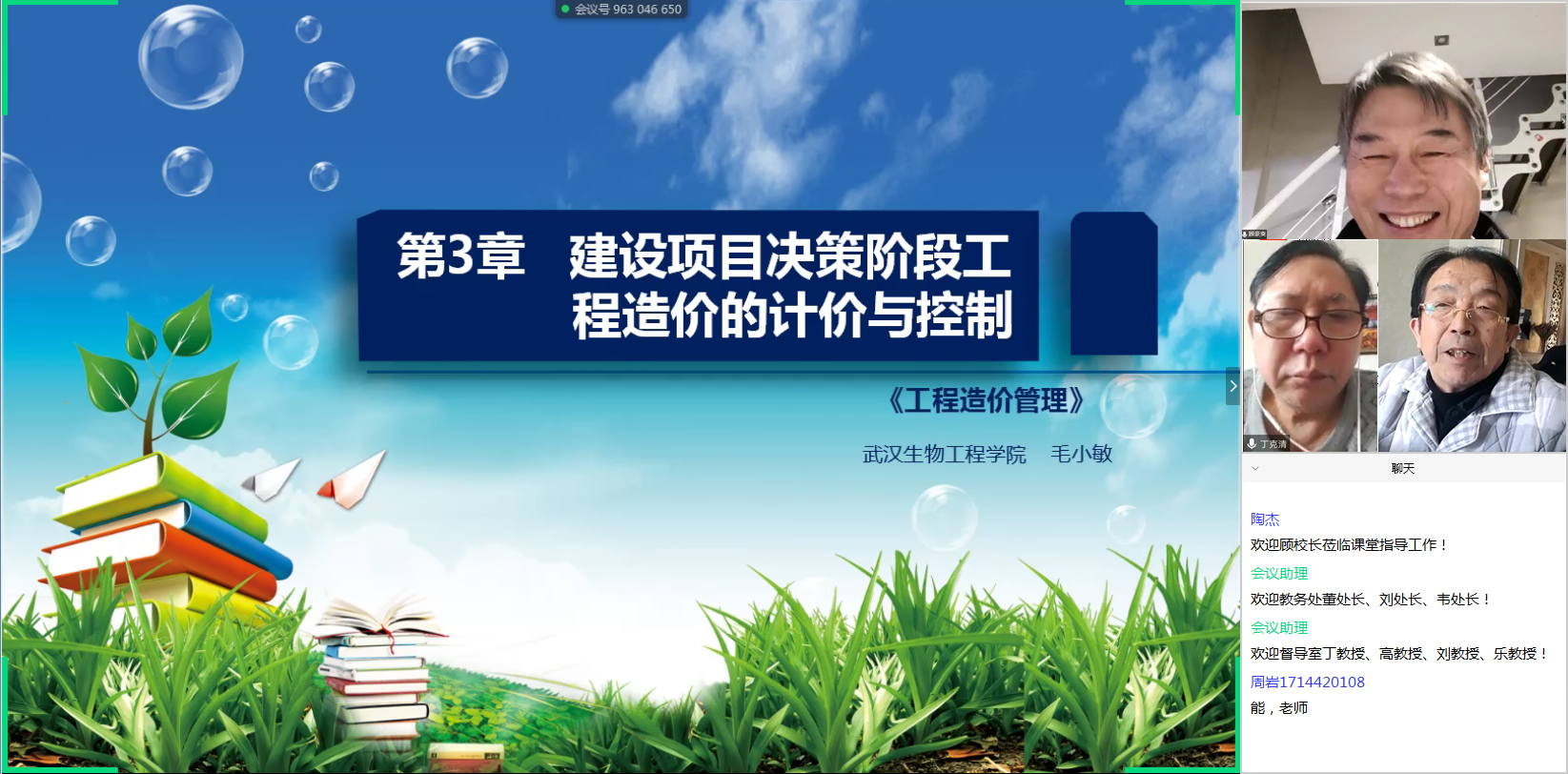 本网讯(通讯员 刘宇)3月12日下午,建筑工程学院在腾讯会议平台直播了由毛小敏副教授主讲的《工程造价管理》线上公开课。学校常务副校长顾豪爽,教务处处长董妍玲,副处长刘春侠、韦丽莉,教育教学督导室丁克清、高焕章、刘焰等专家教授和学院260余师生参加学习互动。