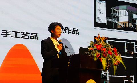图为木工坊项目负责人王贤彪介绍项目运营情况。
