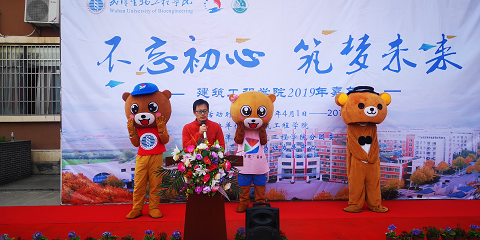 本网讯(大学生记者团 朱怀杰)4月1日16时, 建筑工程学院2019年嘉年华开幕式在筑美广场隆重举行, 党委学工部副部长、易班发展中心主任邵国超、校团委副书记骆群曙等职能部门负责人以及建筑工程学院全体师生参加了开幕式。