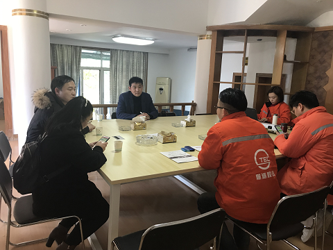 图为建筑工程学院领导与上海隧道工程股份有限公司武汉分公司负责人进行洽谈