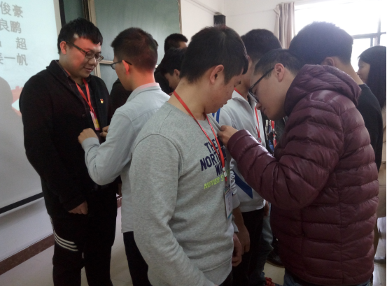 李恺和其他学生党员为预备党员佩戴党徽