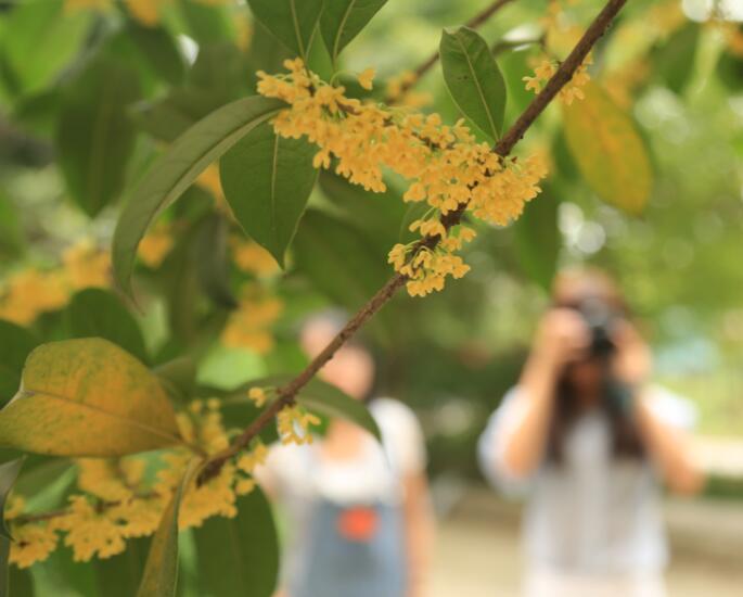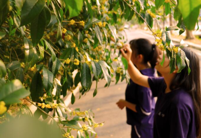 国庆长假,校园里的金桂、四季桂、丹桂等各种桂花品种陆续开放,香气四溢。广大师生纷纷来到校园各处赏桂品香,愉悦身心。