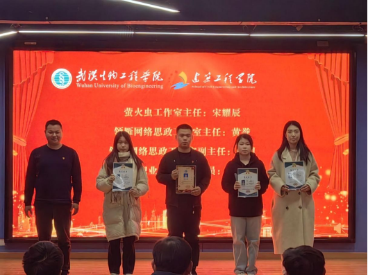 党总支宣传委员吴凯为萤火虫工作室主任宋耀辰、领雁网络思政工作室主任黄誉、大学生职业发展协会张方怡颁发《学生干部证明》