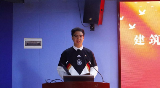 建筑工程学院组织委员商岚为“红旗党支部”颁发流动红旗