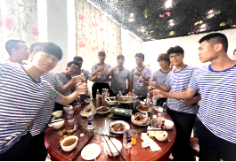 活动中,各班级全部同学一起唱军歌,一起回忆军训的酸甜苦辣,一起畅聊大学生活的规划,学院党政班子成员现场寄语新同学们。宴会结束,同学们做到了“光盘行动”不浪费。一批新生主动积极承担清理与清洁,共同维护生活艺术类的环境卫生。