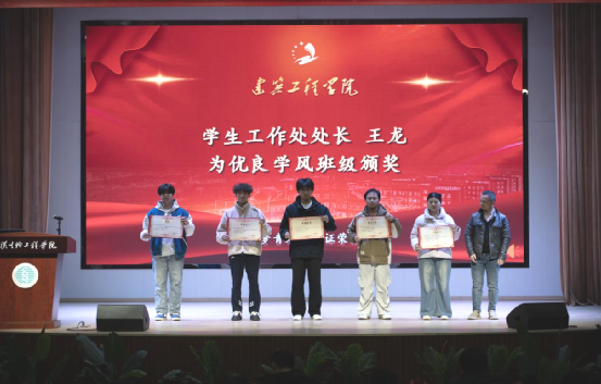 本网讯(通讯员 褚飚滔 魏泽旭 摄影 商家铭 陶坤)12月8日19:00,建筑工程学院2025年学风建设推进会暨秋季学期综合表彰大会在学校小礼堂顺利召开。学生工作处处长王龙、校武装部副部长卢旻,学院党政班子及辅导员、无课教师出席,并为获得2024-2025学年度学习进步奖、校、院五好学生、优秀学生干部、五好学生标兵、国家奖学金、优良学风班级荣誉的学生代表颁奖。大会由卢文慧和吕博同学主持。