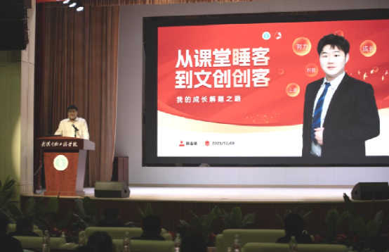 颁奖环节结束后,陈巧等4名同学上台作事迹分享和交流发言。国家奖学金获得者曾敏结合自身学习与实践经历,畅谈平衡学业精进与综合能力提升的心得,引发在场学子的强烈共鸣;五好学生标兵获得者陈巧结合自己的成长经历,鼓励同学们勇敢尝试,把“试错”变成成长的养分,坚持学习,做“久久为功”的“地才”。金秋杯校本特色赛道银奖获得者张金铭分享了参赛过程中的挑战与收获,展现了青年学子的创新活力与拼搏精神;院学生会主席朱荣锋就如何系统开展院学生会工作作表态发言,表达了服务同学、助力学院发展的决心。
