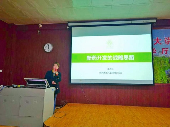 吴木琴教授以新药研发“是何、为何、如何”为主线,从具体的健民儿童药物研究院建设、儿童新制剂研发思路、中药新药研发思路及健民集团研发条件建设等四个方面开展讲座。吴教授指出,在国家大力发展创新型新药的背景下,以市场为导向、突出药品特色,开放式研发的思路非常重要。另外,他还谈到,新药研发蓬勃发展,对人才需求不断上升,大学生应如何把自己培养成新药研究型人才。