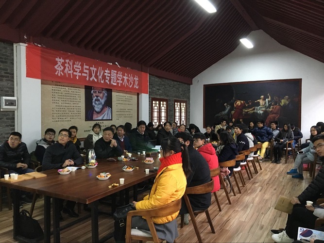 (通讯员 王媛)12月15日下午,“茶科学与文化专题学术沙龙”活动第二场继续在问天书院天人堂举行,科技处处长袁飞荣副教授、督导室高焕章教授分别作了题为《茶园规划与栽培管理之道》和《有机茶叶的生产技术规程》的学术报告。校委会顾问洪华珠教授、科技处、生科院、食品系、园林系和药学院师生代表40余人参加了本次沙龙。