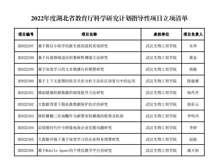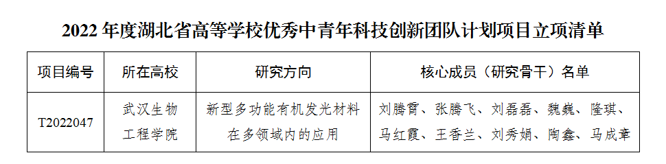 近日,省教育厅下达了2022年度科研计划项目和高校优秀中青年科技创新团队立项通知。我校“基于微信小程序的新生报到流程系统研究”等10项科研计划获批立项。其中,计算机科学与技术学院获批8项,管理学院和园林园艺学院各获批1项。同时,化学与环境工程学院、食品科技学院牵头的“新型多功能有机发光材料在多领域内的应用”科技创新团队项目获批为省高校优秀中青年科技创新团队。