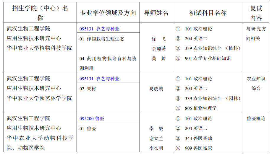 2.华中农业大学、武汉生物工程学院将在网上及时发布招生相关信息,请考生在报名、初试、复试、录取等阶段上网查询,也可直接与两校研究生招生单位联系。
