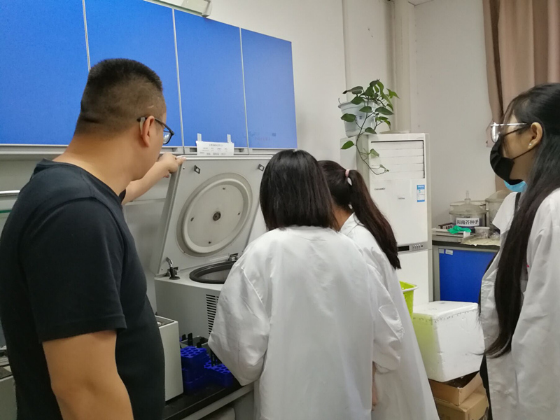 图2 徐飞博士指导研究生使用高速冷冻离心机仪器