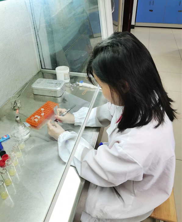 2月7日上午8点30分,2019级联培研究生林芳同学已经来到应用生物技术研究中心6楼实验室,开始准备一天的实验了。林芳同学说:“由于2020年上半年新冠疫情耽误了几个月,所以我更要紧凑、合理地安排实验,抓住每一天,争取把前面的时间补回来。”宿舍-餐厅-实验室,三点一线,是林芳同学的日常活动轨迹,生活既单调又充实。据林芳同学讲述,实验全程谢立兰博士均参与了指导,目前实验进展顺利,初步获得了阳性克隆株,后期进行腹水制备。计划9号回家过年,与家人团聚,年后再战。她是留守实验室的最后一位,前几天其他学生已相继离校。