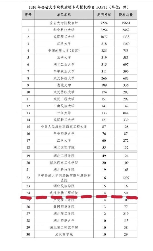 (通讯员 王媛)近日,湖北省知识产权局发布了《湖北省2020年知识产权统计报告》,我校2020年授权发明专利14件,授权总量50件,跃进《2020年全省大专院校发明专利授权排名TOP30》榜单,继续领跑全省民办高校。我校近年来高度重视专利工作,出台《武生院专利管理办法》,不但设立了专利基金,专款专用,支持师生申报专利,而且注重对师生开展专利申报培训,普及专利知识,强化专利保护意识,推动专利申请。同时,鼓励师生利用专利就地向校内外转化应用,推进大学生“双创”工作。并将教师的专利成果纳入科研考核以及职称评审指标体系,2020年,虽然受到疫情影响,师生专利申报和授权仍呈现蓬勃发展的趋势。