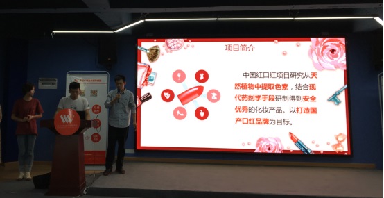 药学院推荐的项目“中国红系列口红”,拟打造中国红牌口红,为国产口红品牌的发展提供新的思路,并且可紧密结合制药专业教育,为大学生开展中药学、制药技术实践提供新的优质平台。该项目获路演复赛总分第二名。