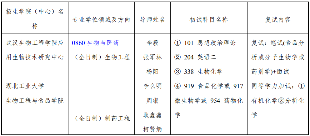 1.湖北工业大学、武汉生物工程学院将在网上及时发布招生相关信息,请考生在报名、初试、复试、录取等阶段上网查询,也可直接与相关招生单位联系。