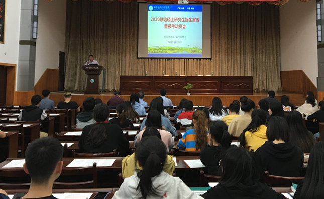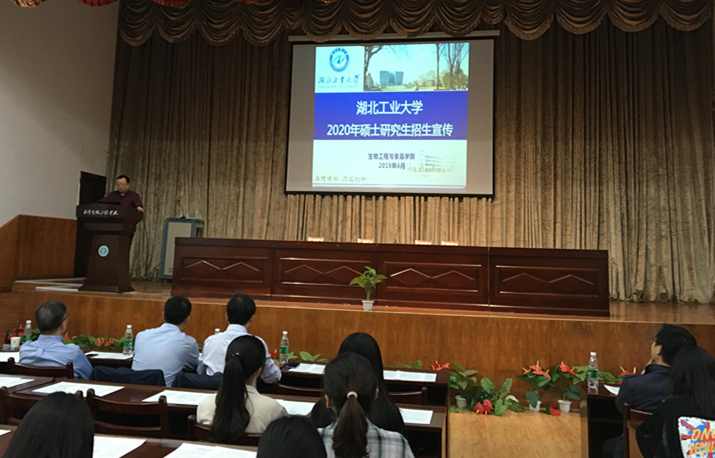 (通讯员 韩洋洋)10月11日下午,在钱学森报告厅,武汉生物工程学院联合湖北工业大学举行了2020年联合培养硕士研究生招生宣传动员专题活动。来自生命科学与技术学院、药学院、食品科技学院有意向考研的120余名同学,以及我校部分教师代表和科技处全体人员参加了该项活动。