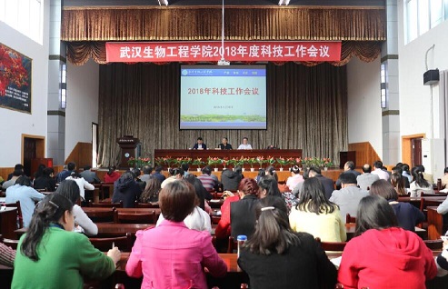 晨光新闻网讯(记者 闻天 摄影 肖亚慧)3月28日下午,武汉生物工程学院2018年度科技工作会议在钱学森报告厅隆重召开。会上,学校表彰了生命科学与技术学院、药学院、外国语学院、计算机与信息工程学院等2017年度科研工作先进单位和一批取得优秀科研成果的教师;科技处处长袁飞荣作了题为《凝心聚力打造科研优势领域 全面创新形成协同发展格局》科技工作报告;副校长李毅教授就如何促进学校科技创新工作迈上新台阶作了专题讲话。学校有关部门负责人,各学院主要负责人、分管科研工作负责人和科研秘书,以及博士教师和具有副教授以上职称教师代表等参加了会议。党委书记赵正洲教授主持会议并作了重要总结讲话。