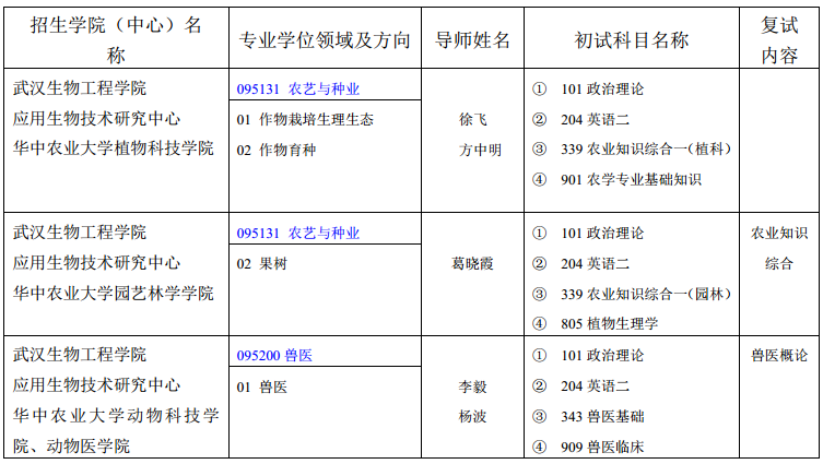 2.华中农业大学、武汉生物工程学院将在网上及时发布招生相关信息,请考生在报名、初试、复试、录取等阶段上网查询,也可直接与两校研究生招生单位联系。