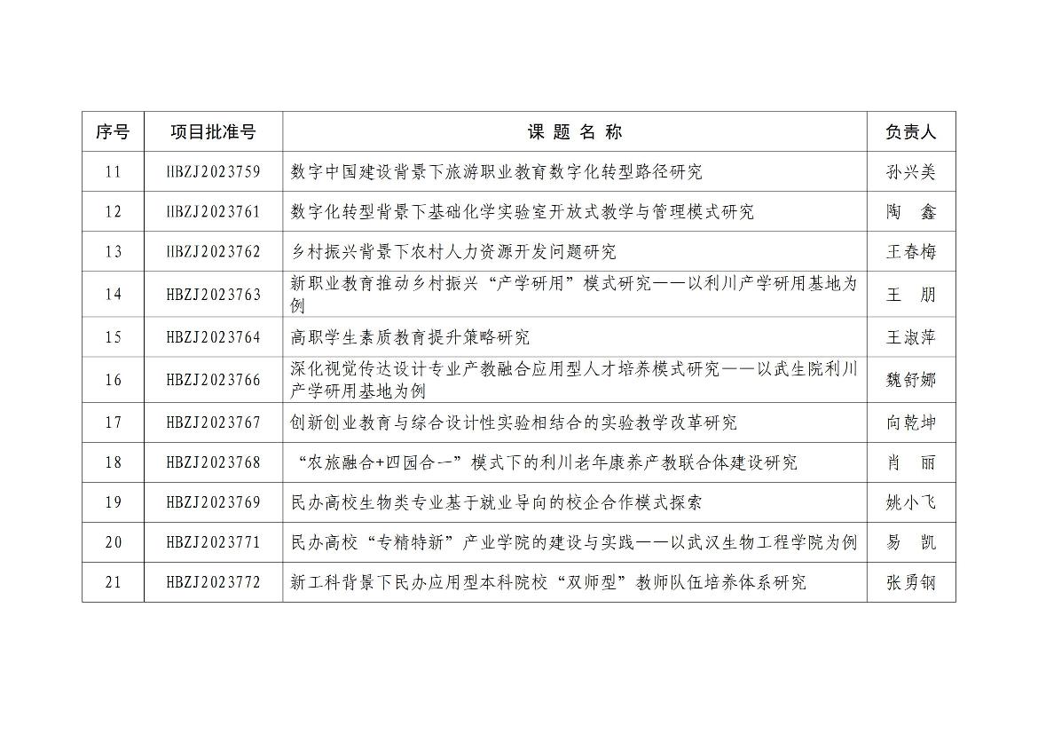 (通讯员 杨学领)近日,湖北省中华职业教育社发布了2023年度课题研究项目立项通知,我校共获批21项。涉及职业教育服务乡村振兴机制、湖北职业教育校企合作激励机制、湖北职业教育数字化转型发展、关键办学能力提升机制等研究领域。这些课题的研究将为学校教育事业高质量发展、服务地方经济社会发展提供理论依据和实践指南。