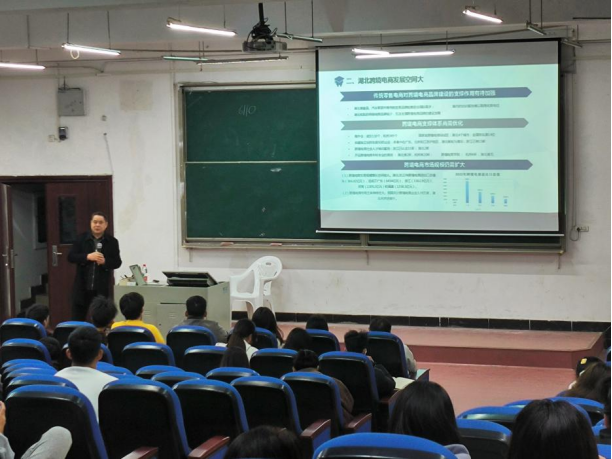 讲座中,桂教授首先指出湖北建设是全国构建新发展格局先行区,发展跨境电商大有可为,指出当前跨境电子商务已经成为国际贸易的重要形式,这为中小企业提供了更广阔的市场空间和商业机会,同时,也面临着诸多挑战,如物流成本高、税收政策复杂、消费者需求多样化等。对此,桂教授详细的分析了湖北地区电子商务发展的现状及优势,和现场的老师、同学探讨了湖北在跨境电子商务领域的机遇与挑战,并分享了他在跨境电子商务领域的实践经验,他认为依托花湖临空港是湖北做大做强跨境电商的重大机遇和现实选择,并对花湖临空港的总体发展思路做出了详细的介绍,最后为进一步推动跨境电子商务的发展,提出了他的想法和建议。