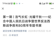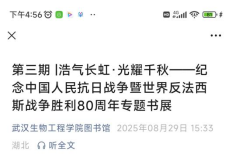 本网讯(通讯员 瞿丹)为纪念中国人民抗日战争暨世界反法西斯战争胜利80周年,图书馆联合掌阅精选电子书以“浩气长虹·光耀千秋”为主题,通过线上、线下融合的方式,全方位、多角度呈现抗战历史与精神内涵。
