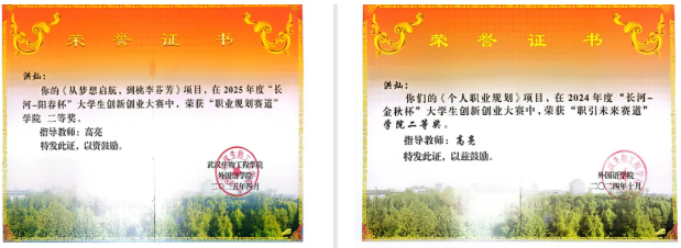 主要奖项:国家级5项、省级2项、院校级48项,覆盖学科竞赛、双创实践、志愿服务等多领域