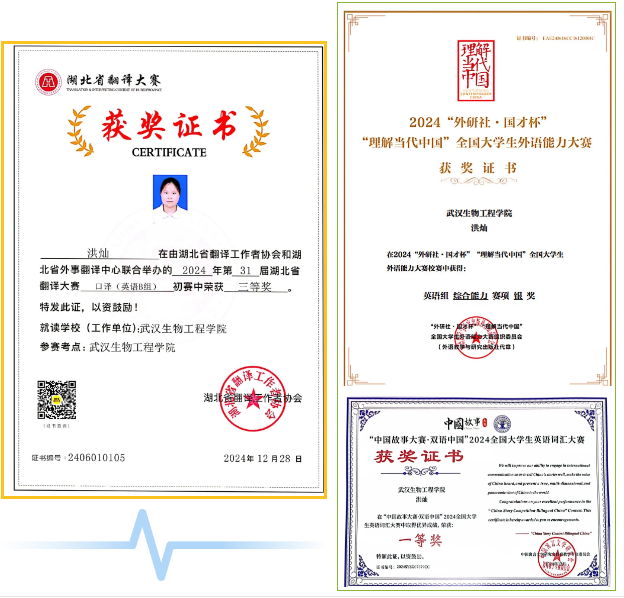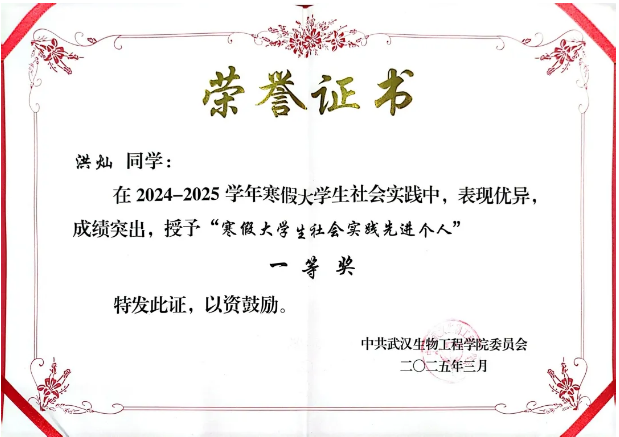从英语专业的学业王者到双创赛场的实践先锋,从志愿服务的温暖使者到集体建设的骨干力量,武汉生物工程学院2022级英语本科1班学生洪灿,用三年专业与综测年级第一的成绩、50余项覆盖学科竞赛、社会实践、学生工作的荣誉,诠释了“五好学生标兵”的真正内涵。她以扎实的专业功底筑牢根基,以多元的实践经历丰富成长,在坚持与突破中,走出了一条全面发展的青春之路。