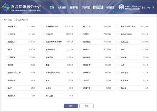 通过“学科”、“会议所属机构”进行导航检索,快速查看特定学科、会议所属机构相关的会议论文。