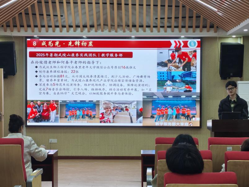 3月9日晚,见面会上,永春里老年大学教务部孙俊倩老师详细介绍了永春里老年大学“旅居式+寄宿制”的特色定位及前期康养活动成果,帮助志愿者明确服务方向。同学们热情响应,立志以青春力量守护银发时光。