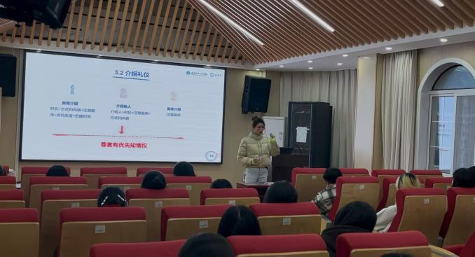 3月23日晚,孙俊倩老师以案例教学和实操演练,系统培训仪容、仪表、称呼、介绍、手势、拜访、接待、方位等礼仪规范。志愿者们深刻体会到,得体的言行是对老年学员的尊重,更是服务品质的基石。