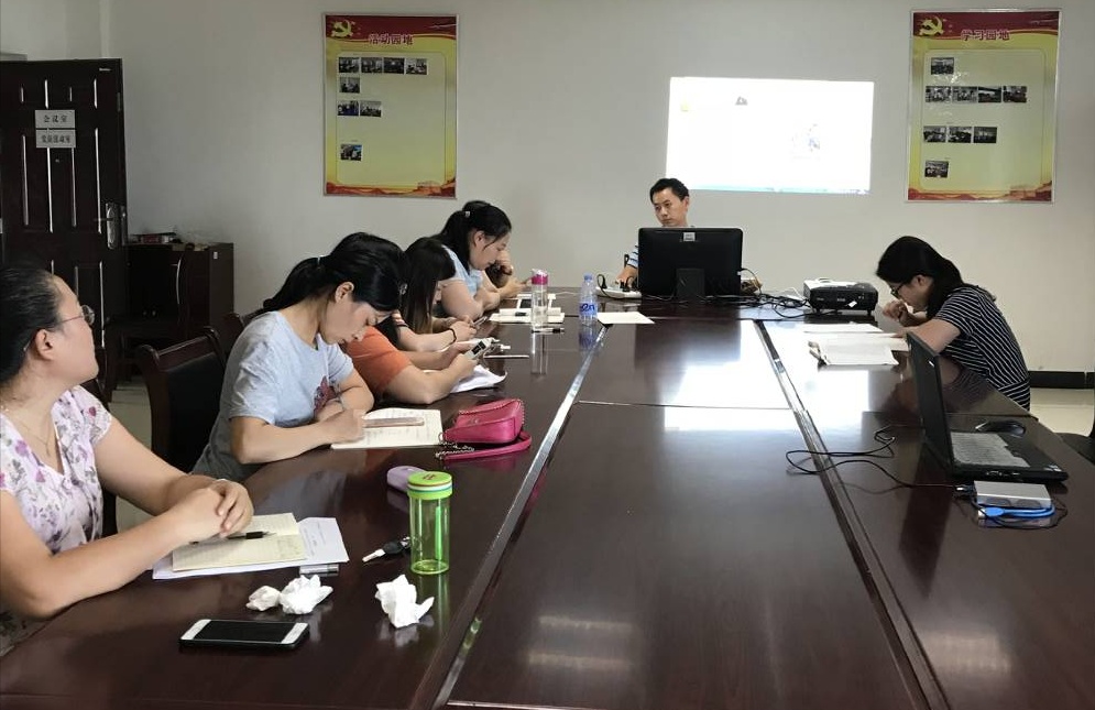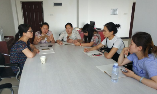 图为暑假前基础教研室骨干教师对新教材进行研讨